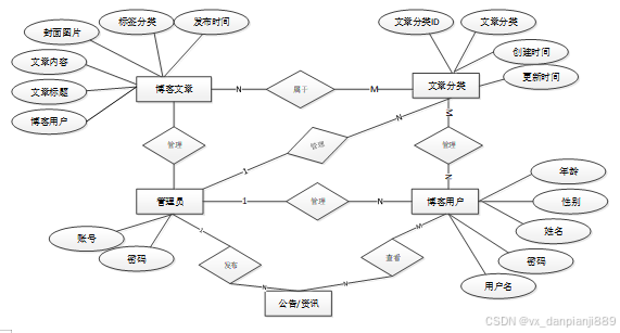 (3)韦伯博客系统总E-R图如下图3-5所示
