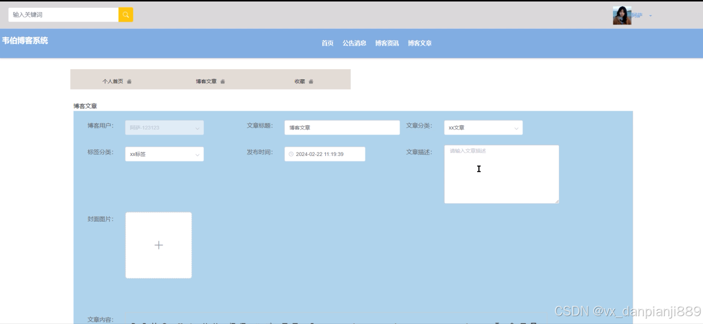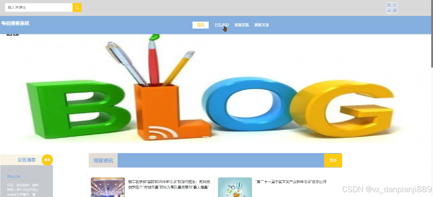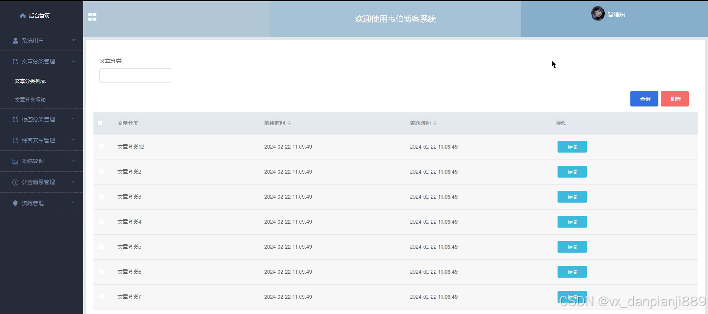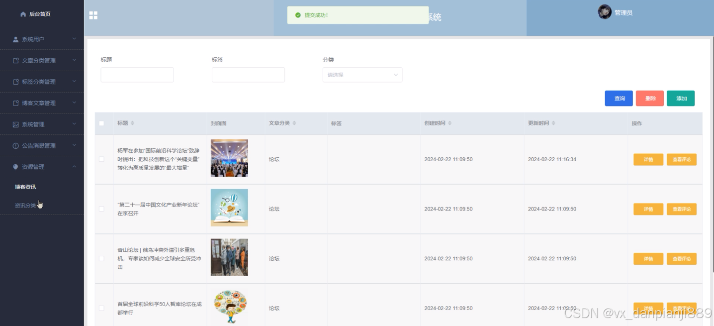 5.管理员功能,管理员可以对用户或者博客资讯、博客文章等进行管理。