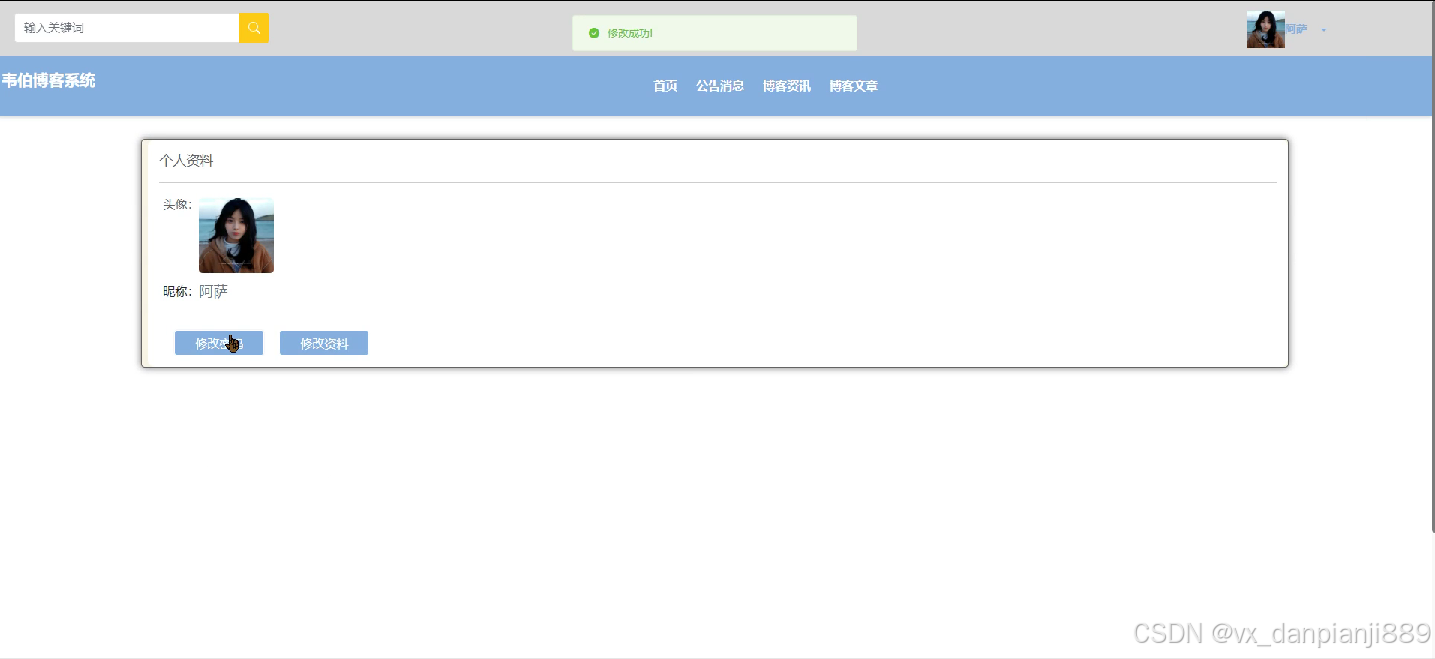 4.修改用户信息,可以修改用户密码或者用户名等一些个性化操作。