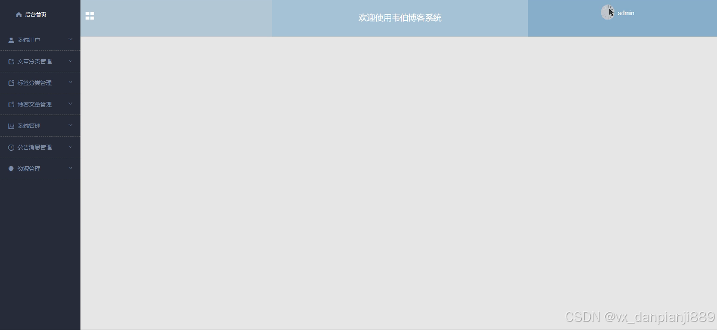 This site is a B/S mode system, using the Spring Boot framework and MYSQL database design and development to fully ensure the stability of the system. The system has the characteristics of clear interface, simple operation, and complete functions, making the management of Weber Blog system systematic and standardized. The use of this system frees management personnel from heavy work and enables paperless office work, effectively improving the efficiency of Weber Blog system management.
