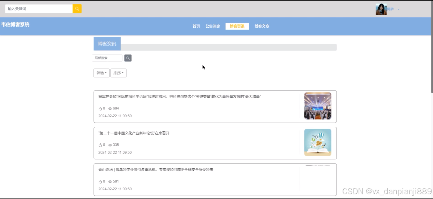 博客资讯管理界面逻辑代码如下: