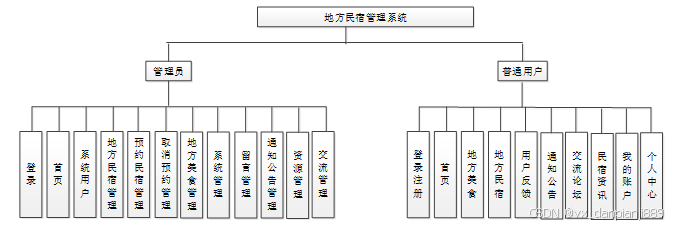 地方民宿管理系统是中需要存储不少民宿信息,其模块功能结构,具体的结构图如下: