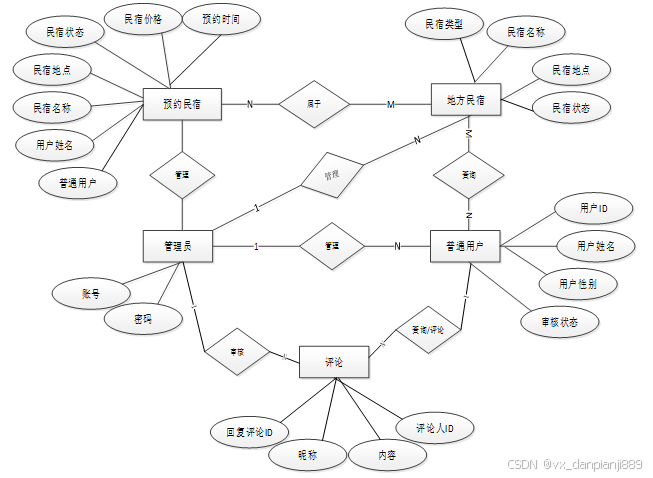 下面是整个地方民宿管理系统中主要的数据库表总E-R实体关系图。