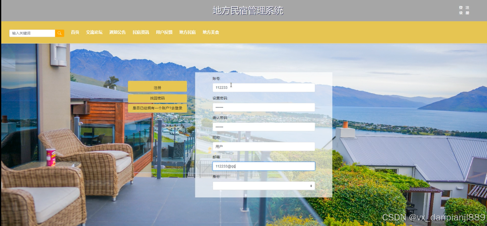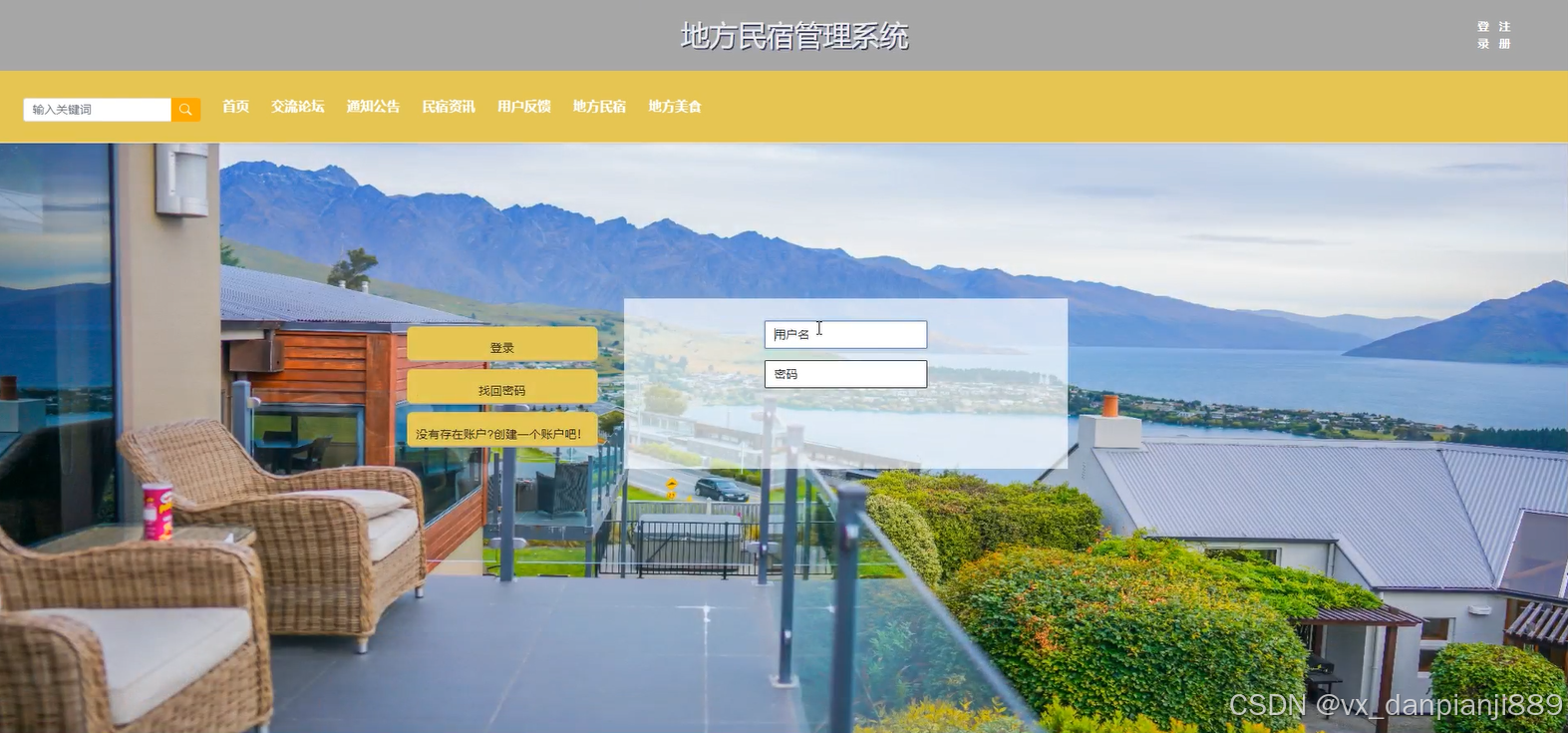 关键词:Java;springboot;地方民宿管理系统;MySQL