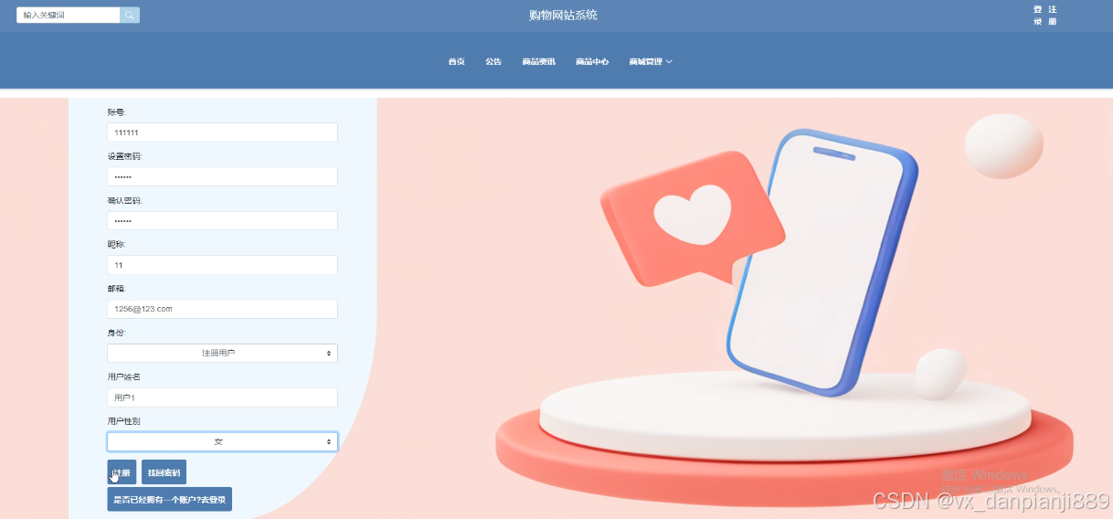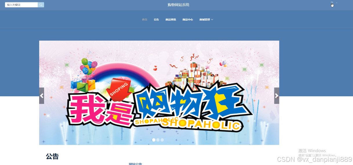 The shopping website system developed this time is a special online shopping platform based on the current Internet plus era, so that people can enjoy the services of buying goods without going out and waiting for delivery to their homes in a fast-paced living and working environment. This project mainly consists of two parts: the front-end and back-end. The target audience for these two parts is different. The front-end is used by a large number of users who need to purchase goods, while the back-end is used by program administrators. Users can browse products, register and log in, add intended products to shopping carts, make payments and purchase a series of activities in the front-end. Administrators can manage users, manage products, manage product categories, and manage front-end user orders in the back-end. The application of this project can enable merchants to follow the pace of the times, not be eliminated, and enhance their competitiveness.