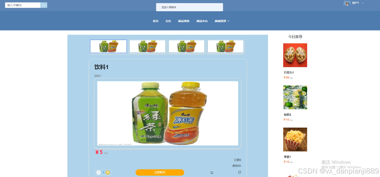 游客只能查看商品中心模块的商品,不能进行任何购买、评论操作,普通用户可以选择自己需要的商品,加入购物车、立即购买、收藏、评论。