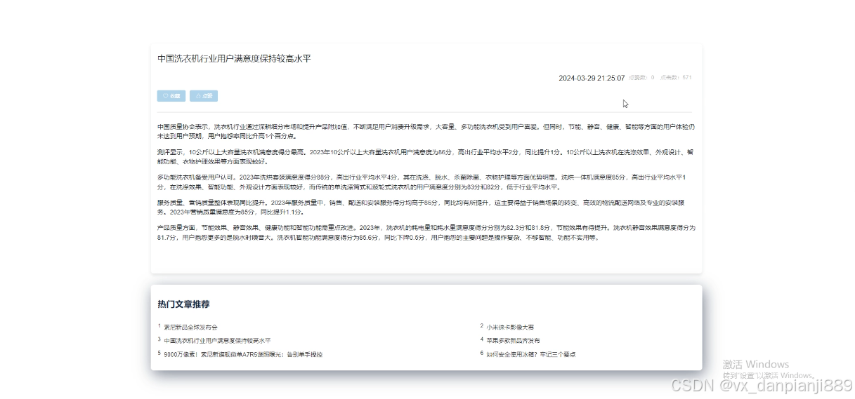 当用户点击购物网站系统中导航栏上的“商品资讯”后将会进入到该“商品资讯”列表的界面,然后选择想要看的资讯信息,点击进入到详细界面,在详细界面可以收藏+点赞+评论等操作。商品资讯详情界面如下图4-6所示。