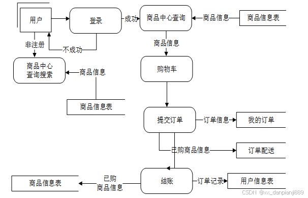 | 基本事件流 | 1.进入系统登录界面 2.点击商品中心,选择某条商品中心查看详情 3.加入购物车或者立即购买 4.输入订单信息提交订单 |