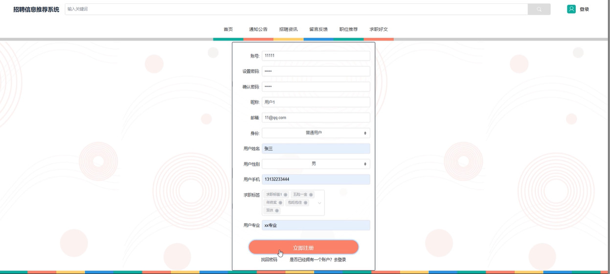 注册登录:注册登录功能允许普通用户创建新账户或使用现有账户登录系统。注册时,用户需要提供必要的信息,如用户名、密码、邮箱等。登录则需要输入已注册的用户名和密码,系统会验证信息的正确性,确保用户身份的安全性。