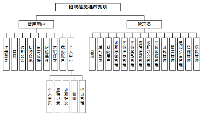 招聘信息推荐系统划分为了前端模块和后端模块两大部分。