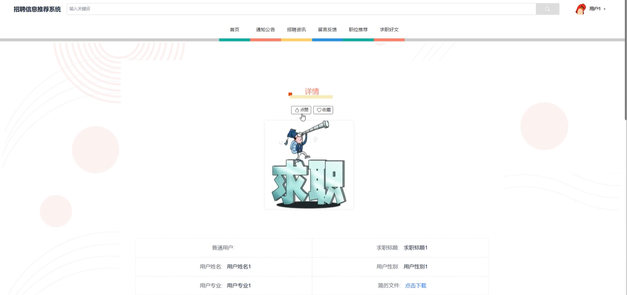 用户可以浏览详细的招聘资讯,包括职位要求、公司信息等,并能够对感兴趣的资讯进行点赞、收藏、评论或回复。用户还可以通过搜索功能找到自己关注的招聘信息。所有的评论和回复都可以进行删除操作。模块如下图所示: