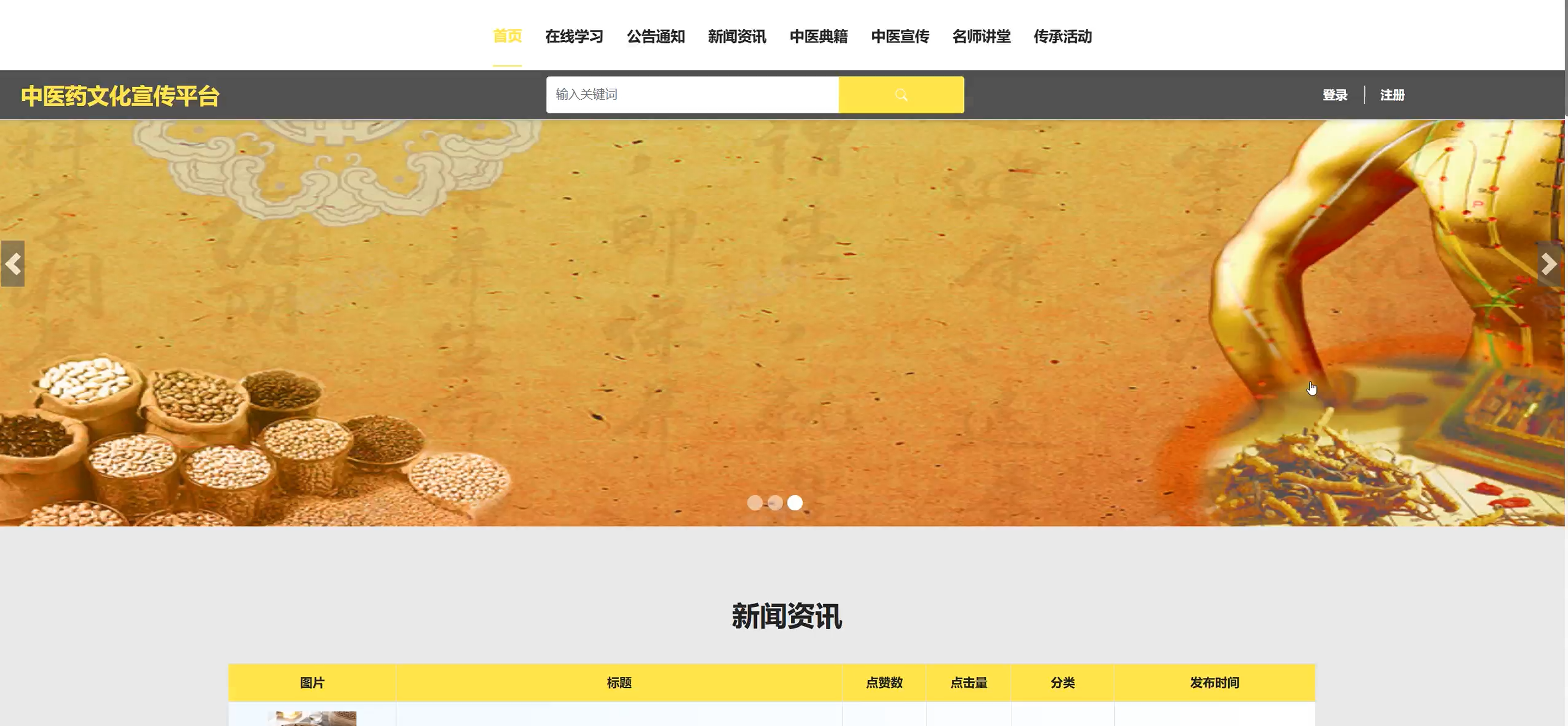 关键词:中医药文化宣传平台;Java语言;Spring Boot框架;MySQL数据库