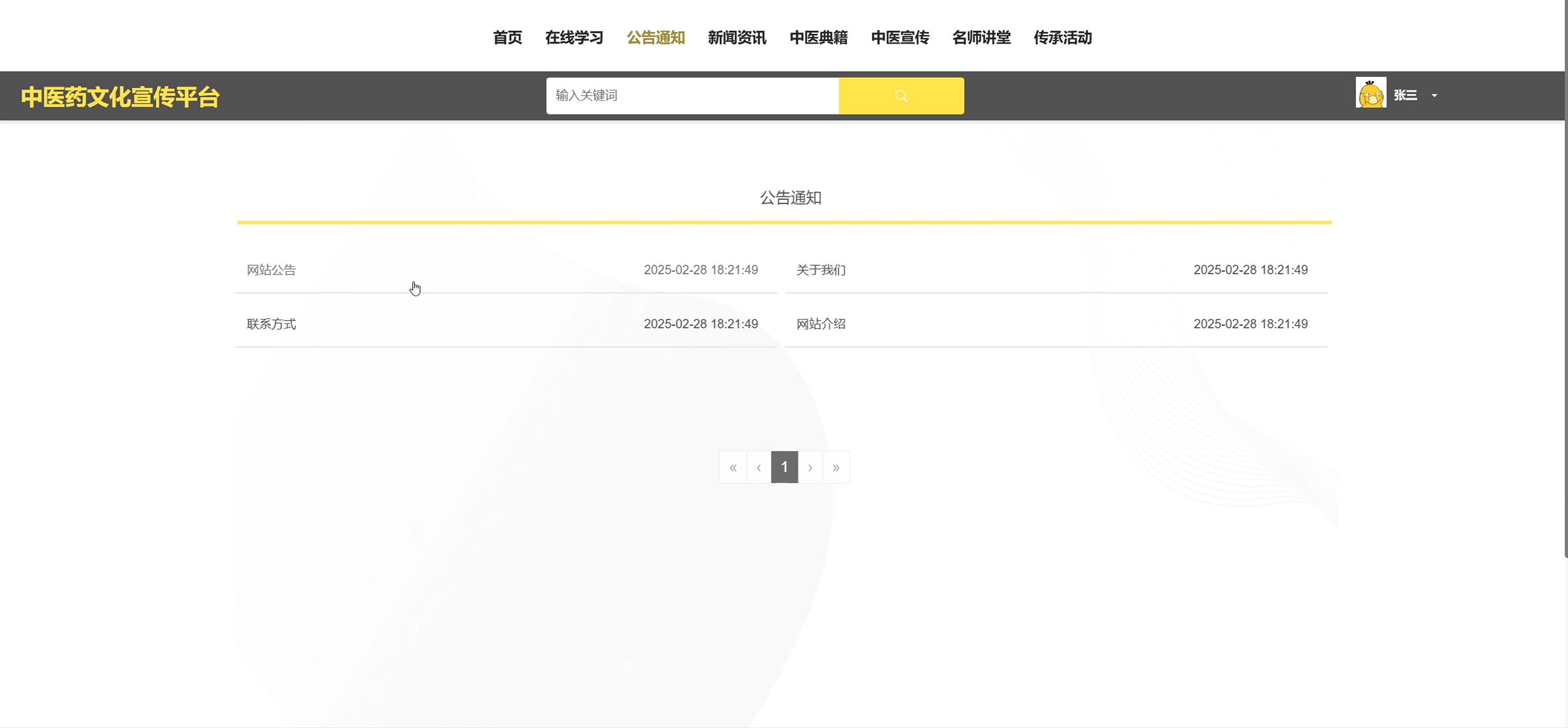 首页:集中展示平台的核心内容,包括最新公告通知、新闻资讯、传承活动等,让用户迅速掌握平台动态。