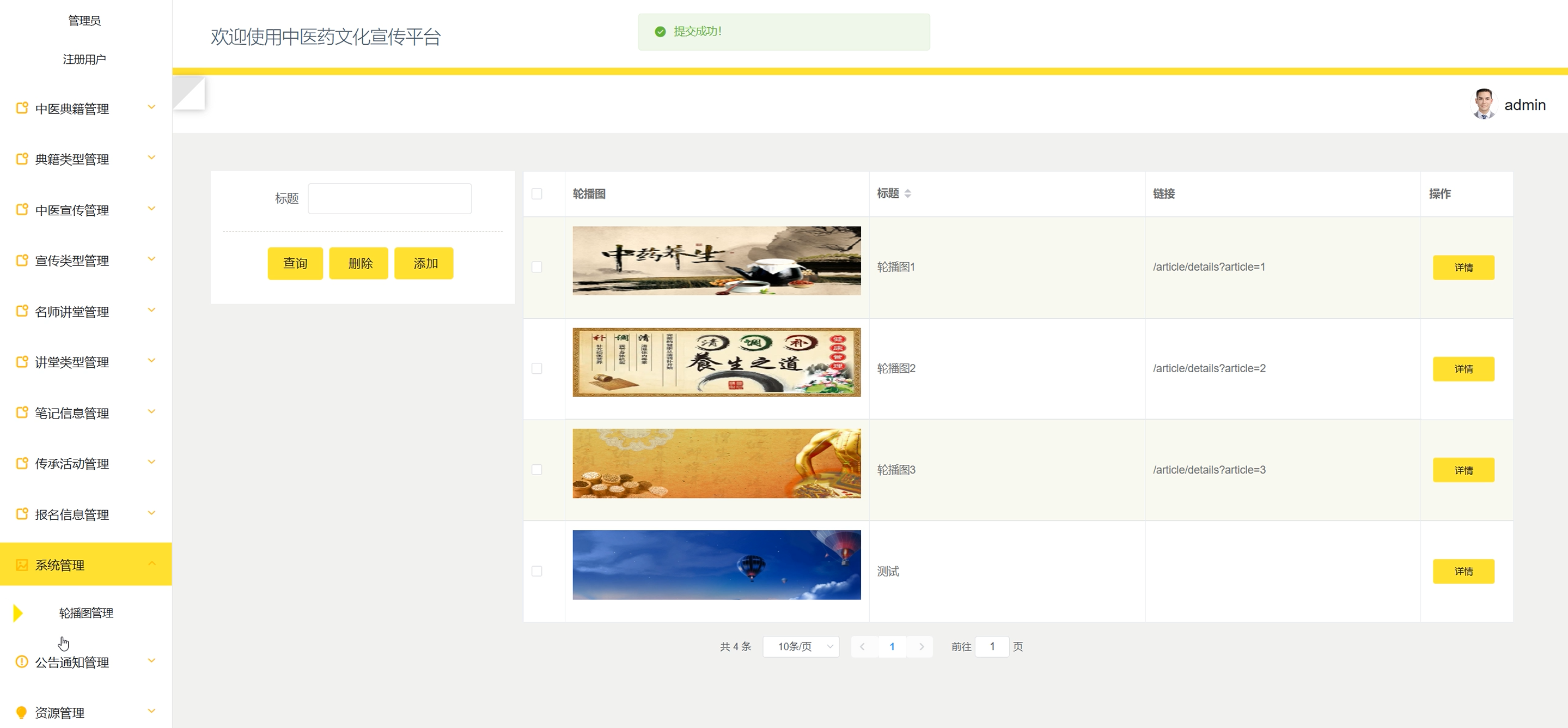 管理员可以更新和管理首页轮播图内容,提升用户体验。其界面如下图所示。
