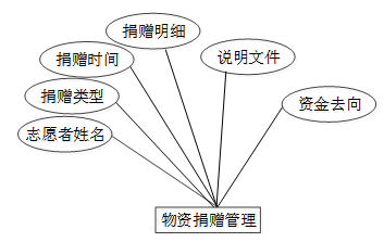 物资捐赠:志愿者可以点击“物资捐赠”详情,包括志愿者姓名、捐赠类型、捐赠时间、捐赠明细、捐赠备注等信息。界面如图 5-6物资捐赠界面所示。