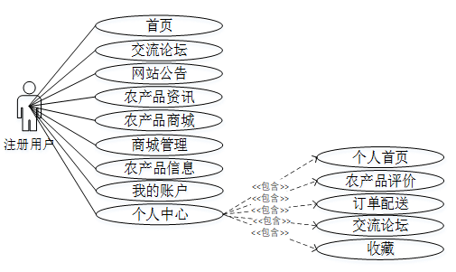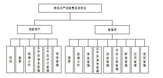 通过对应的功能做了需求分析以后该特色农产品销售系统各角色主要包括的功能说明如下: