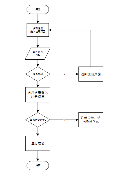 注册的过程,第一部分是账号的注册,第二部分是信息完善。在业务开展过程中,管理员可对用户信息进行修改等管理操作,注册流程如图3-4用户注册流程图所示。