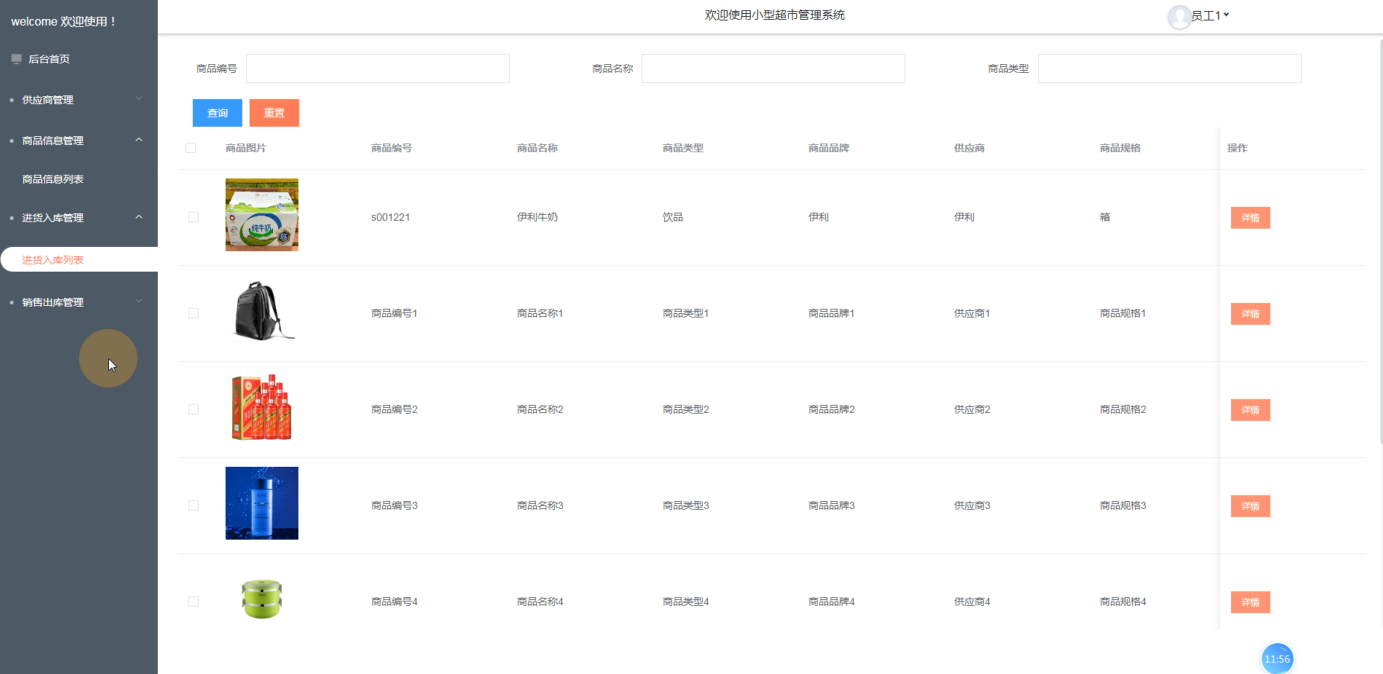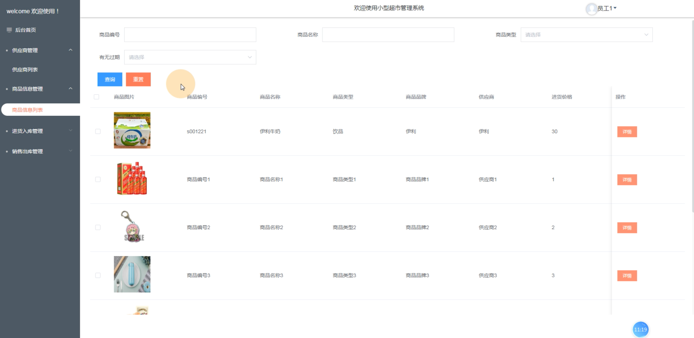 商品信息管理:为员工提供查看所有商品详情的功能,包括库存状态和价格。方便员工根据需要查找特定商品的信息。