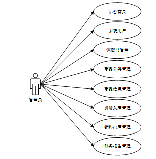系统用例分析是对小型超市管理系统中各个功能模块的用户需求和行为进行分析,以识别和描述不同的用户用例。通过系统用例分析,可以深入了解用户在系统上的操作流程和交互方式,为系统设计和开发提供指导,并确保系统能够满足用户的需求和期望。