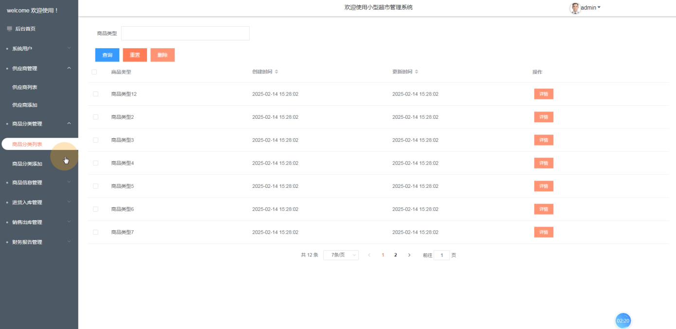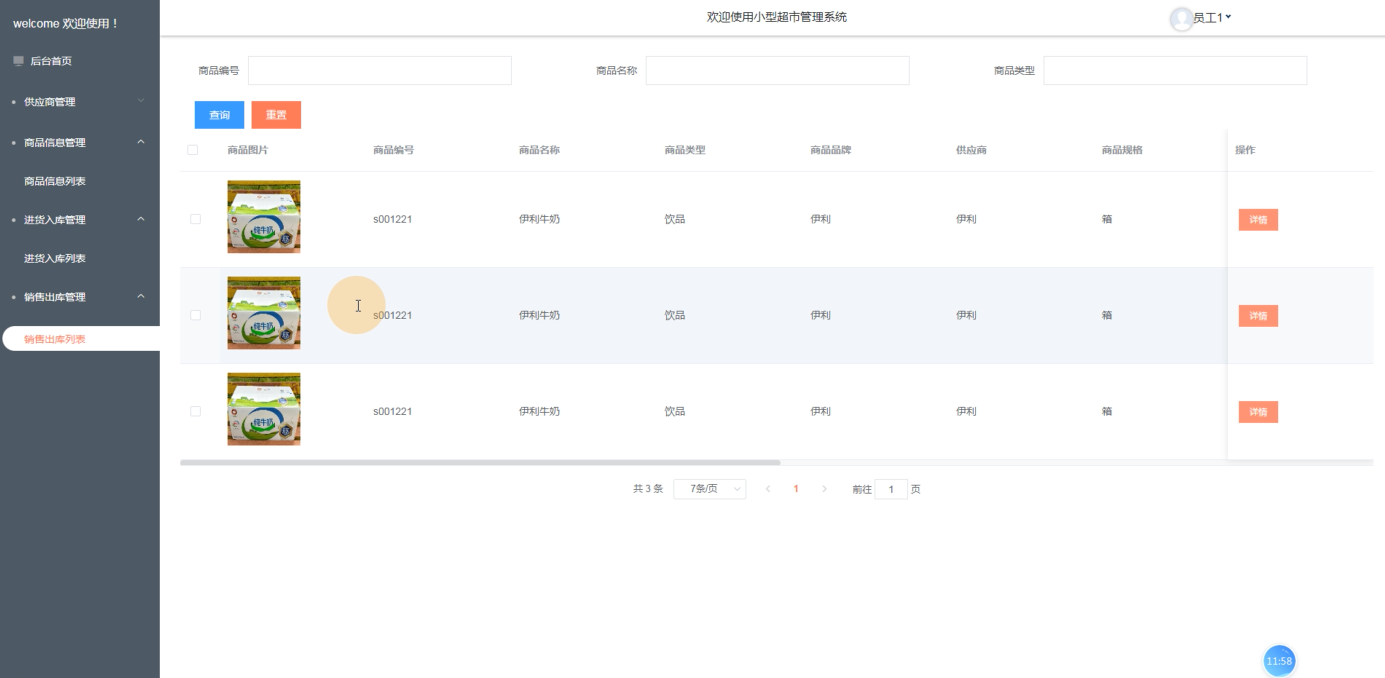 With the intensification of competition in the retail industry, small supermarkets urgently need an efficient and integrated management system to improve operational efficiency. The purpose of this study is to develop a small supermarket management system based on Spring Boot, Java and MySQL to meet the needs of users in different roles, especially the functional needs of employees and administrators in commodity management, supplier management and sales outbound statistics.