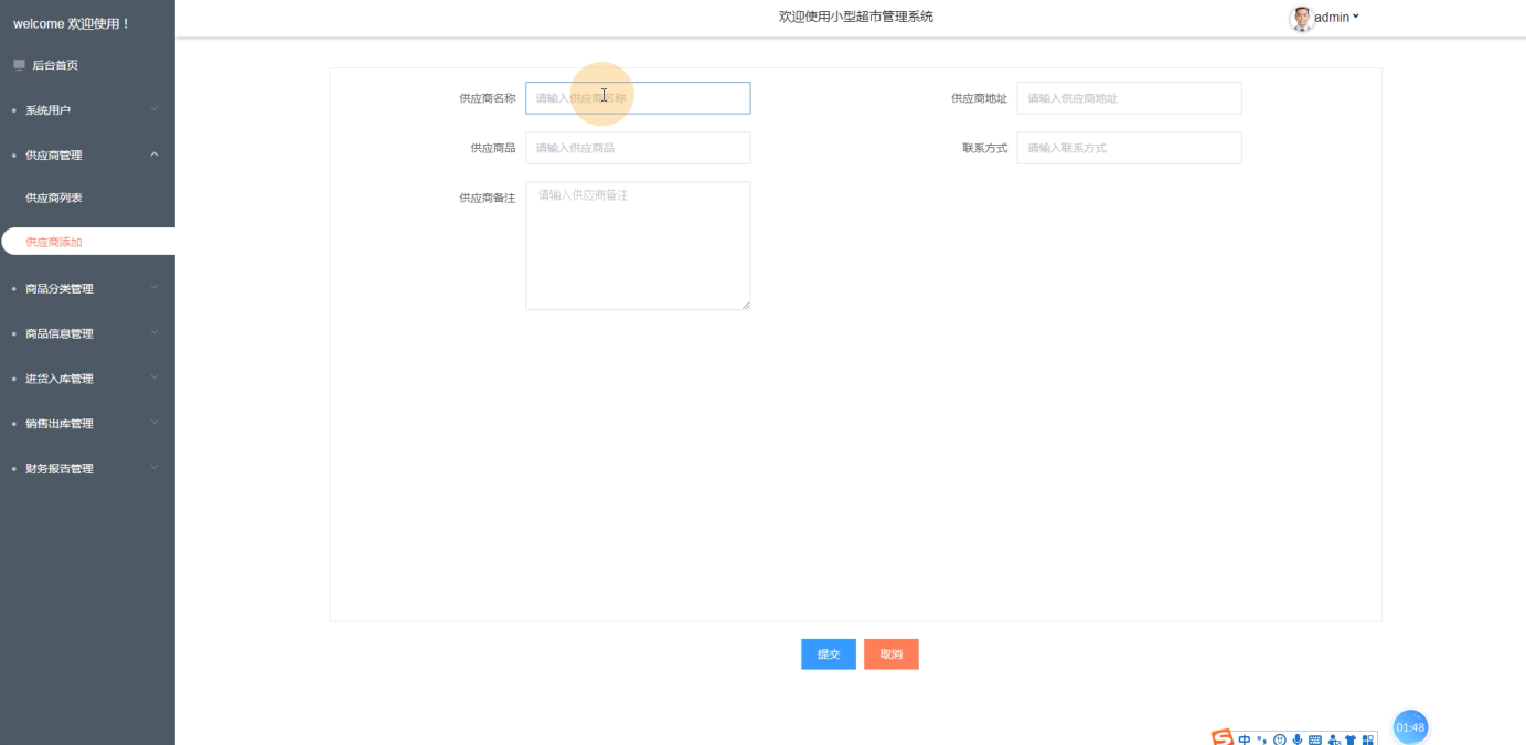 小型超市管理系统得到设计与实现,利用了目前市场上普遍使用的Java编程语言,以及MySQL数据库管理功能,和目前比较流行的Spring Boot框架进行系统界面的布置,以现实生活的教育管理过程为标准,设计实现了包括整合供应商管理、商品分类管理、商品信息管理、进货入库管理、销售出库管理、财务报告管理等功能,为用户提供多元前面的功能操作,基本实现整个小型超市管理流程。