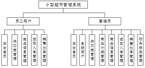 本小型超市管理系统旨在满足员工用户和管理员两大角色的不同需求,通过实现多个功能模块来优化超市的日常运营。系统核心功能包括商品信息管理、供应商管理、进货入库管理、销售出库管理以及财务报告管理等,确保每个用户角色都能高效地执行其职责范围内的任务。具体功能描述如下: