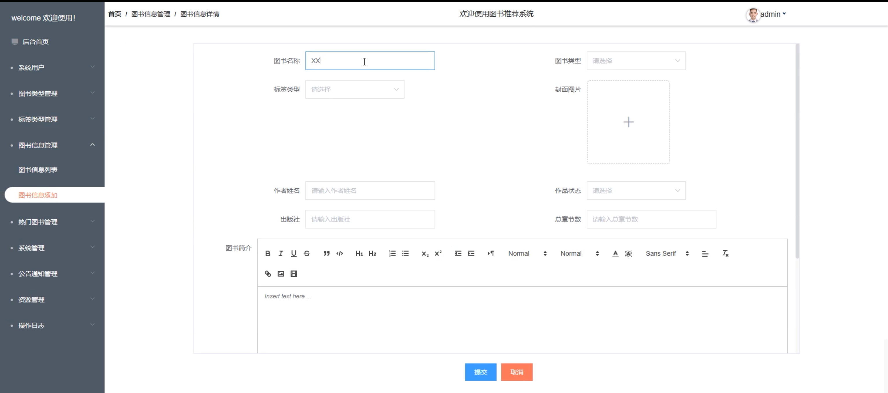 图5-8图书信息添加界面