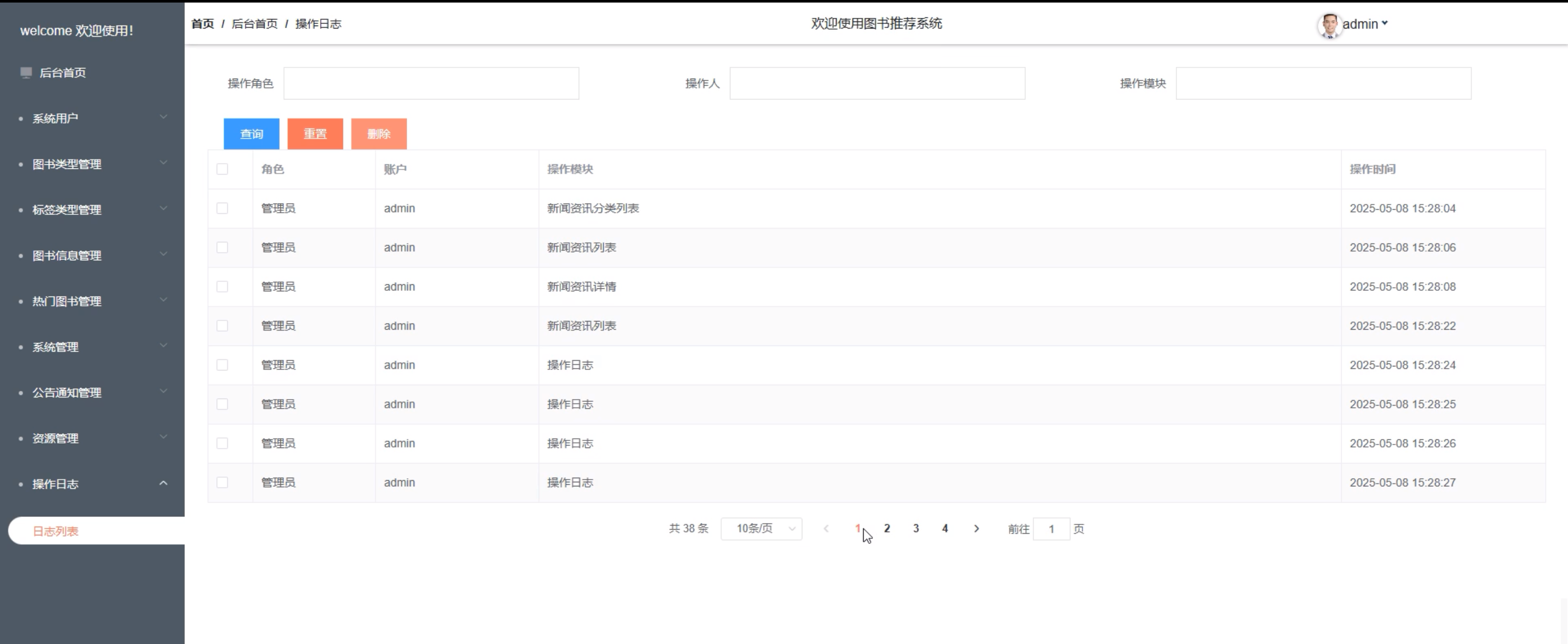 图5-12操作日志界面