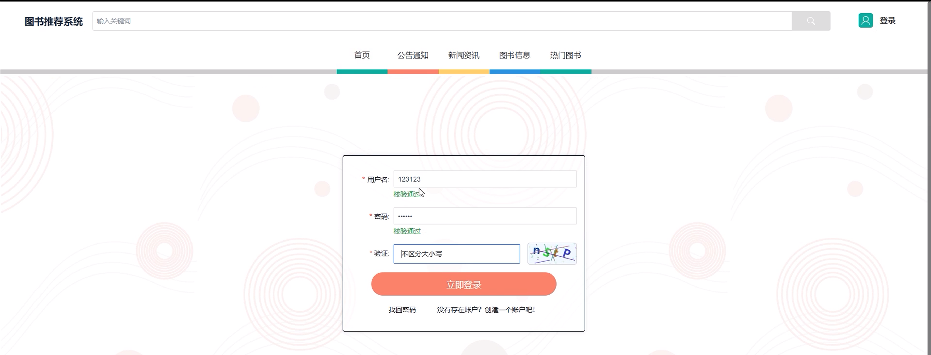 | 2. 点击登录按钮进行验证。 | 跳转至用户首页。 | ||