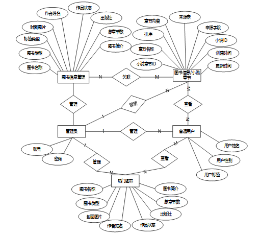 借助先进的系统,E-R图使其他用户可以快速轻松地了解系统的功能以及他们之间的关系。根据图书推荐系统分析结果,本图书推荐系统总体E-R图如下图所示。
