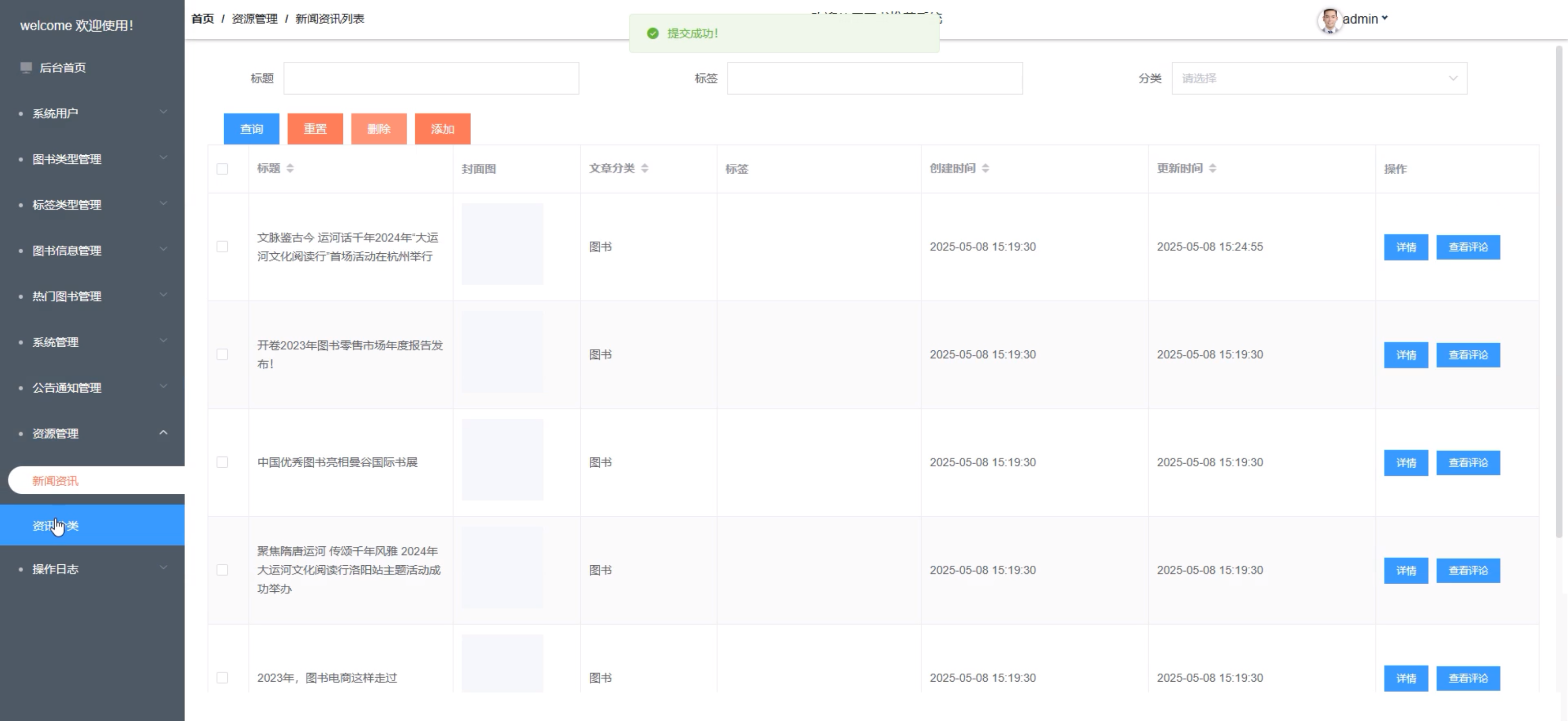 | 3. 检查是否提交成功,并检查图书信息信息是否成功添加至平台。 | 图书信息信息成功添加至平台。 |