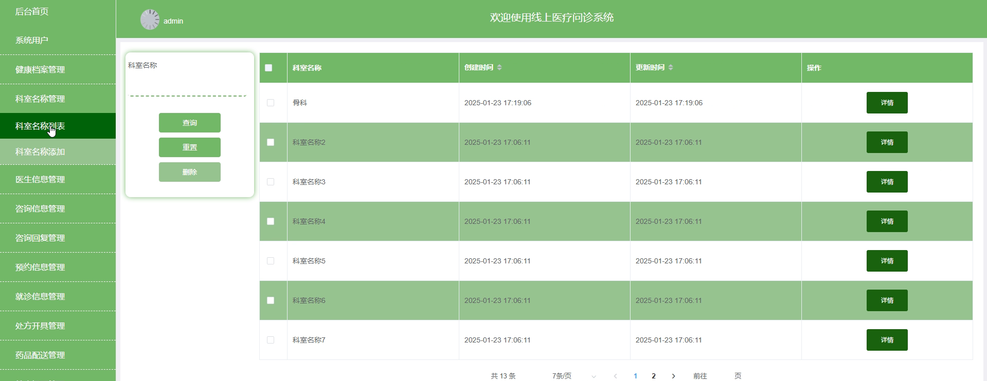 科室名称管理:管理员能够创建、编辑或删除科室名称,帮助医院更好地组织医疗服务资源。