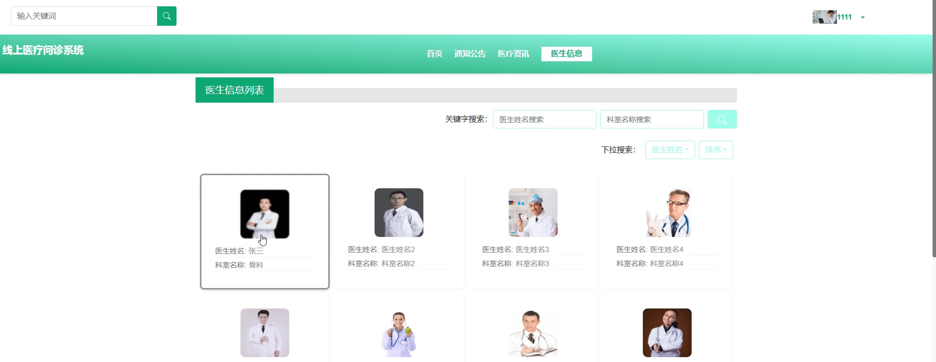医生信息:展示医生的专业背景、擅长领域及科室信息,便于用户选择合适的医生进行咨询。