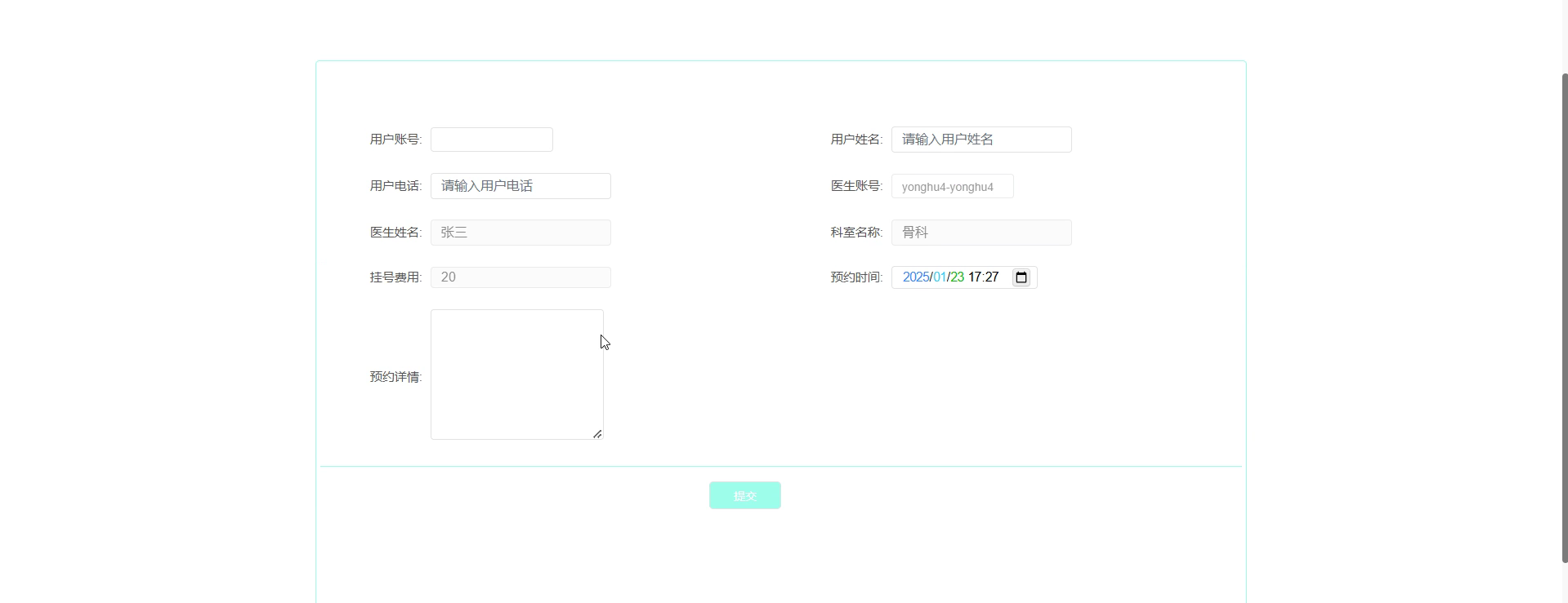 预约信息:允许用户在线预约医生的的门诊时间,减少现场排队等候的时间。