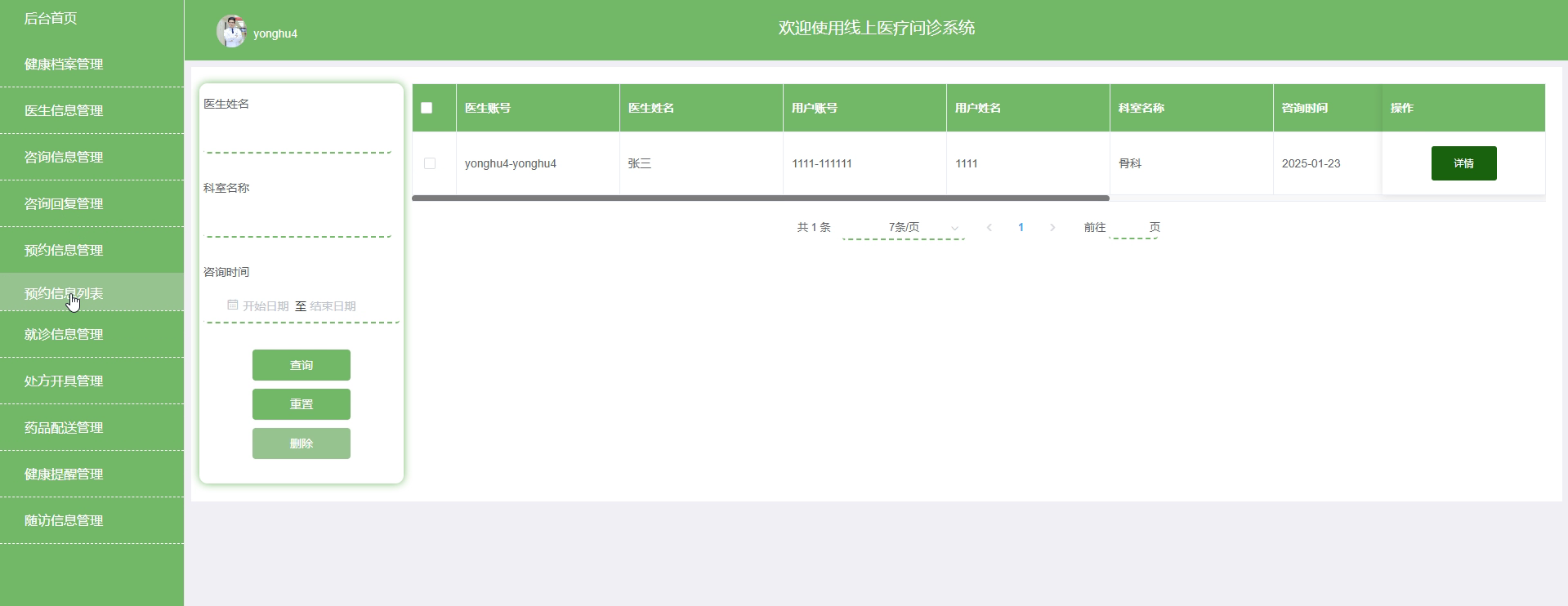 咨询信息管理:管理员可以查看所有未处理的患者用户咨询请求,确保每个问题都能得到及时回应。