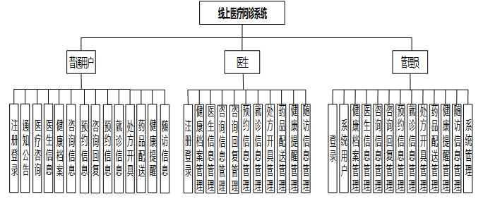 在线上医疗问诊系统主要使用角色分为普通用户、医生用户以及系统管理员。