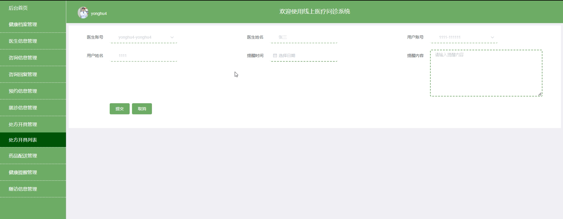 The online medical consultation system can be generally divided into doctor end, administrator end, and user end. The main functions that the system can achieve include modules such as doctor information, health records, medical consultation, appointment information, medical information, prescription issuance, drug delivery, health reminders, follow-up information, etc. The online medical consultation system can not only improve the efficiency of medical services, but also enhance the patient's medical experience, especially for chronic disease management and the elderly population, which has significant value.