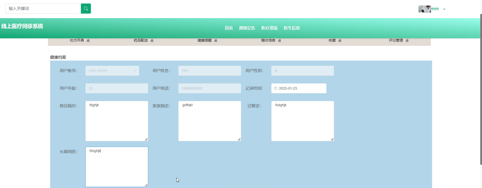 健康档案:用户可以在系统中建立和更新个人健康档案,包括病史、过敏反应、手术历史等重要信息。