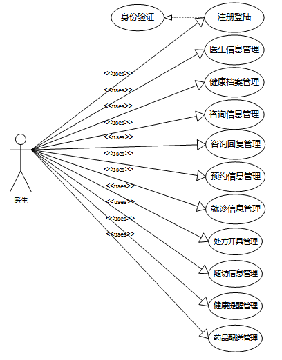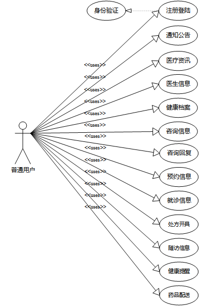 图3-1 线上医疗问诊系统普通用户角色用例图