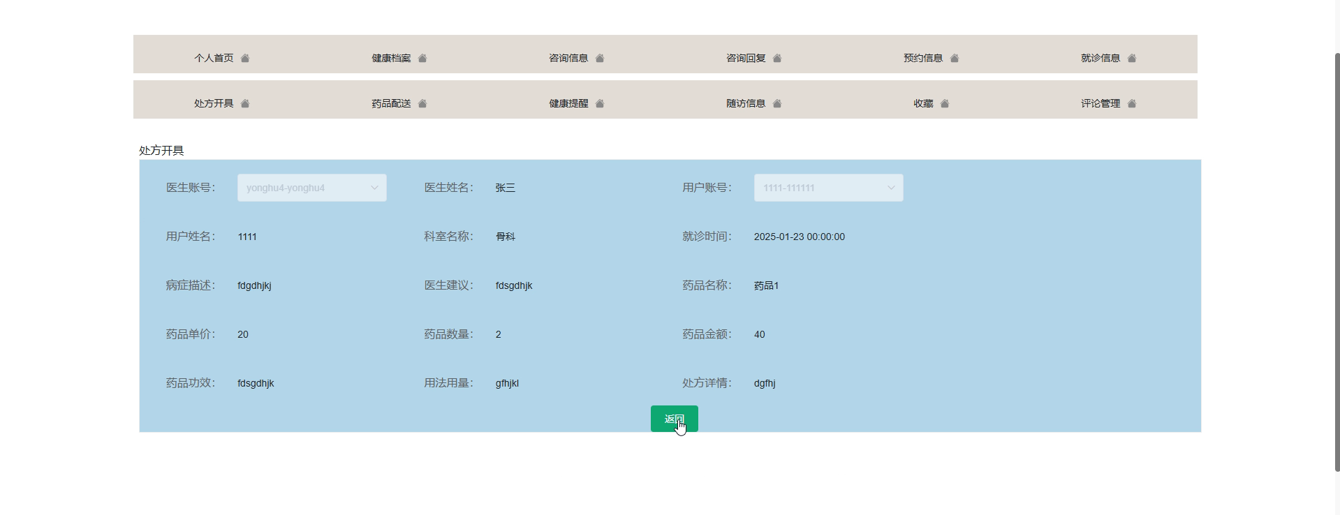 Key words:Medical consultation; Spring Boot framework; Medical information and prescription issuance