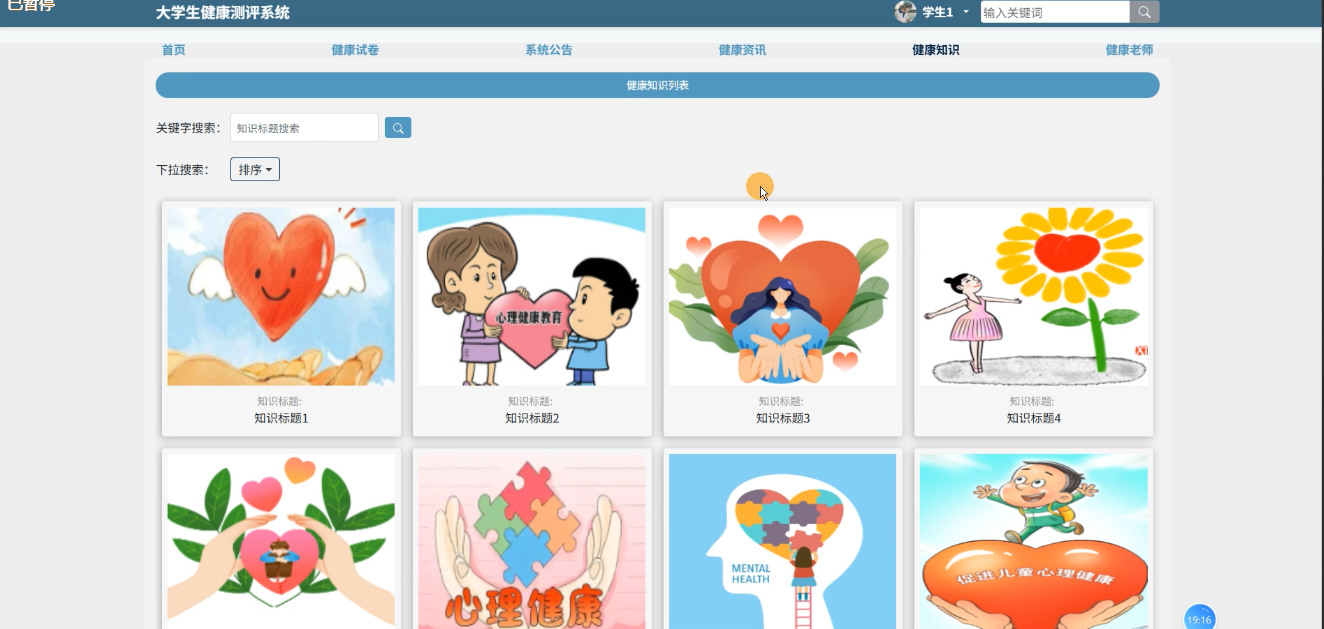 - 健康知识:学生用户可以查看系统上的健康知识列表,对健康知识进行浏览、阅读,对干感兴趣的知识可以点赞、收藏和评论。