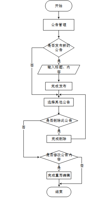 当公告内容需要更新或修正时,修改后的公告将替换原公告,心理将确保信息的及时性和准确性。公告管理流程图如图3-5所示。