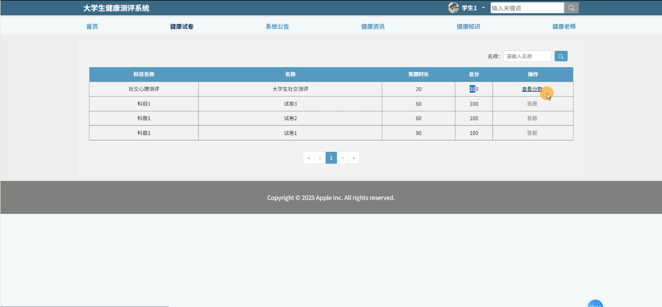 - 健康试卷:学生用户可以填写健康试卷题目,参加系统上的心理测试。