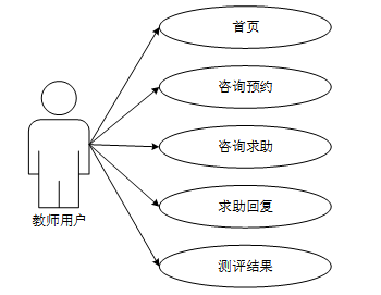 教师用户端可以在系统中管理自己的信息,具有咨询预约、咨询求助、求助回复、测评结果等管理。教师用户模块如图2-3所示