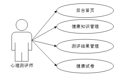心理测评师端可以在系统中管理自己的信息,具有健康知识、测评结果、健康试卷等管理。心理测评师模块如图2-4所示。
