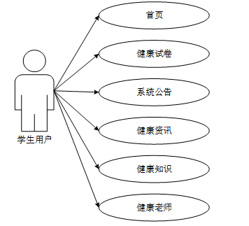 学生用户端在大学生健康测评系统中使用到访人员的相关功能,根据个人的对于心理需求在本系统内完成浏览选择和预约咨询等操作,并且还能够在系统内进行个人信息的维护。学生用户模块图如图2-2所示。