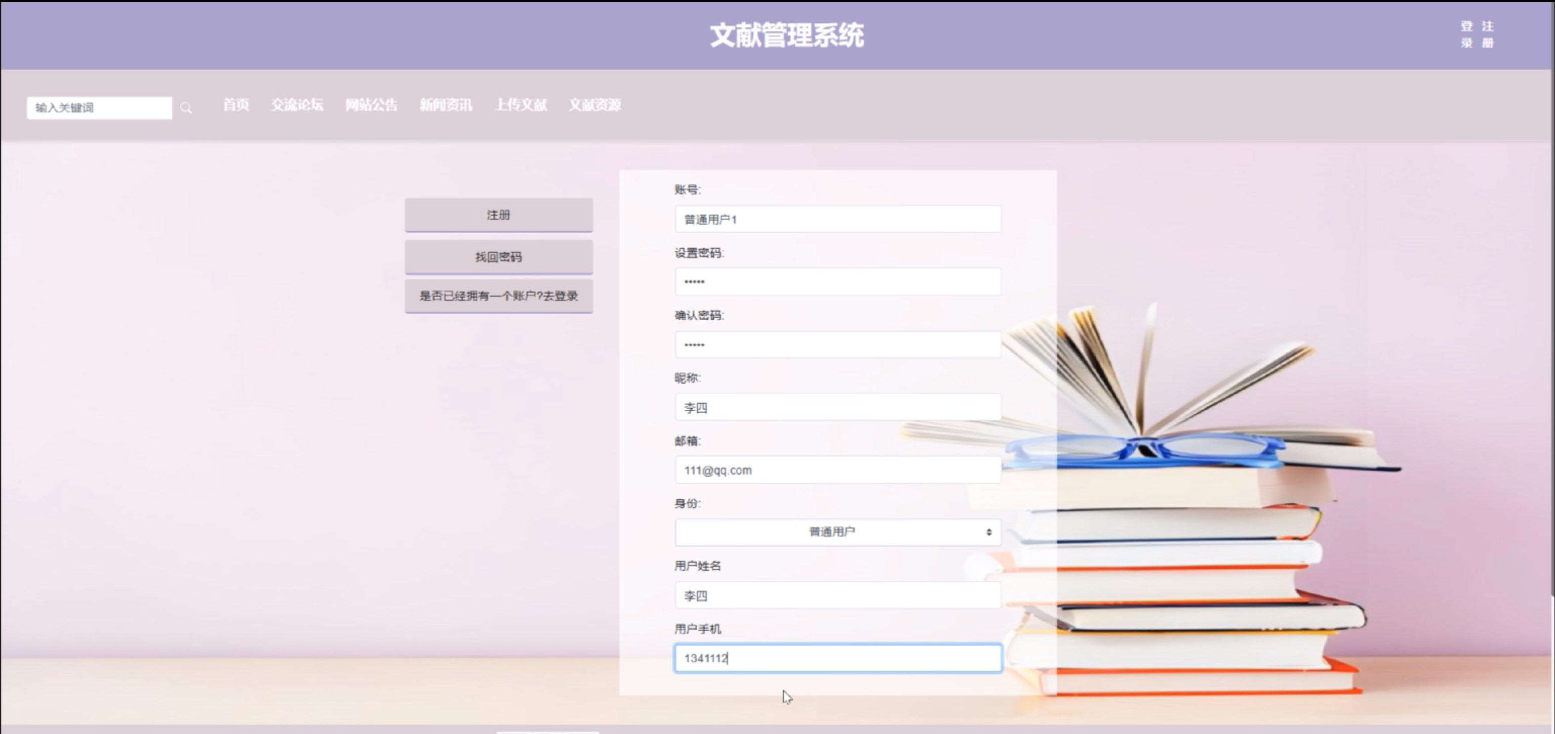按照文献管理系统的角色,主要包括普通用户和管理员这两大部分。