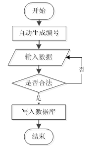 用户成功登入系统后就能够实现增加数据的操作,增加数据的编号是特定的,系统生成,用户不能随意填写,除了编号以外,其他增加信息用户自己填写,填写后的信息经过系统验证,验证合法通过就显示增加数据成功了,相反的话,就没有增加成功,图2-1显示的就是在增加数据时的流程。