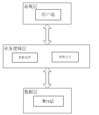 数据层(DL):由于本文献管理系统的数据是放在服务端的mysql数据库中,因此本属于服务层的部分可以直接整合在业务逻辑层中,所以数据层中只有数据库,其主要完成本文献管理系统的数据存储和管理功能。