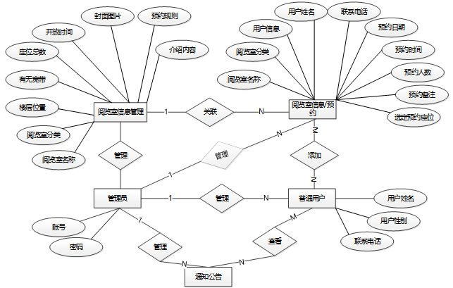 本图书馆座位预约管理系统按功能分为普通用户和管理员两种角色,具体功能如下: